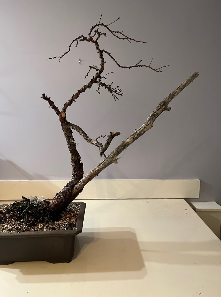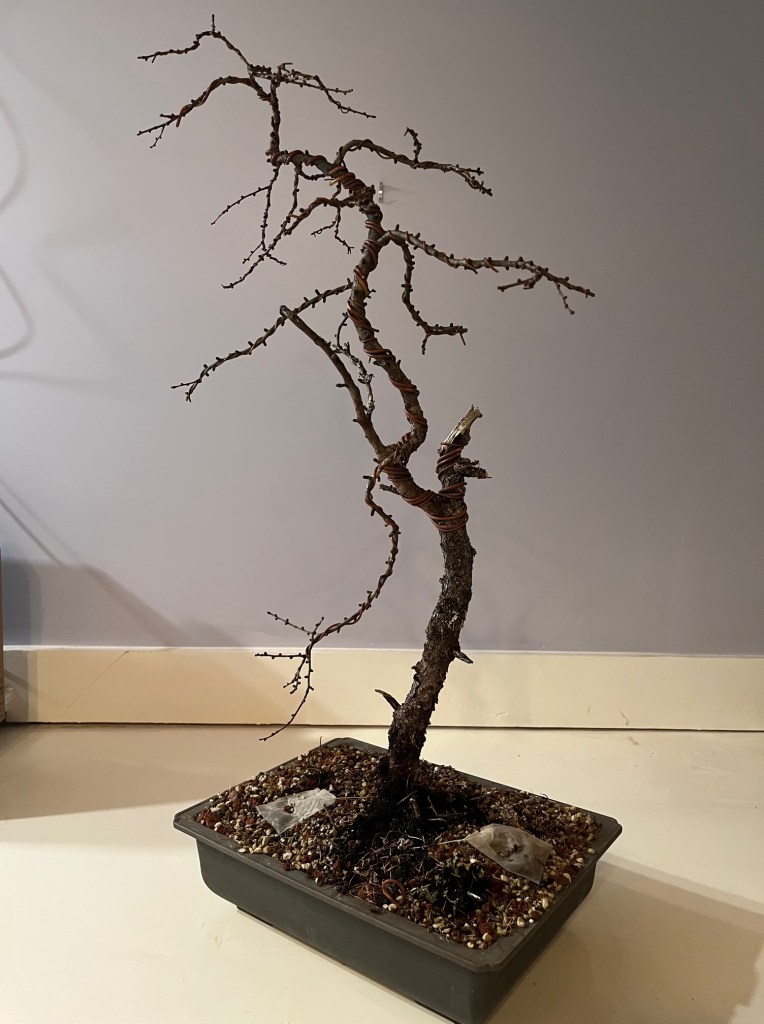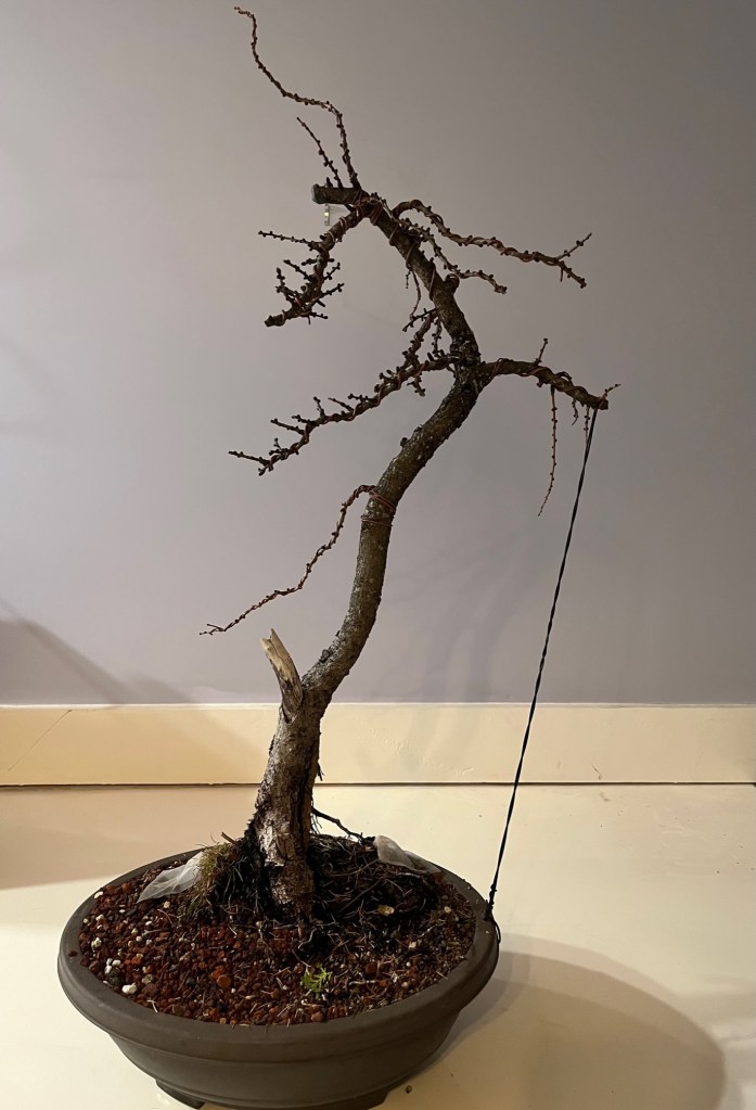 The first tree that we worked on was a gently curving larch. This is the only tree that I had already come up with a pretty firm plan for design.